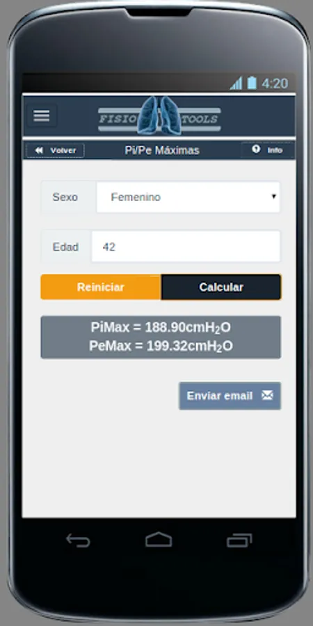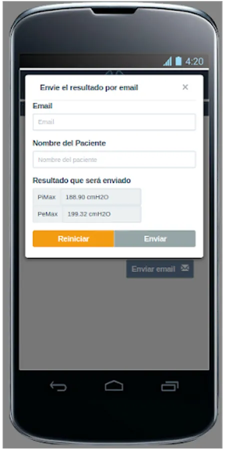 Ability to send the results by email, facilitating team communication and control of the patient's progress. (Standard user application is used, one email account configured on the device is required).
