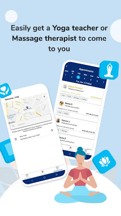 Say goodbye to back-and-forth. Book an in-home Massage session with a licensed Massage Therapist or a Private Yoga session with a certified Yoga teacher seamlessly with a click or two.
