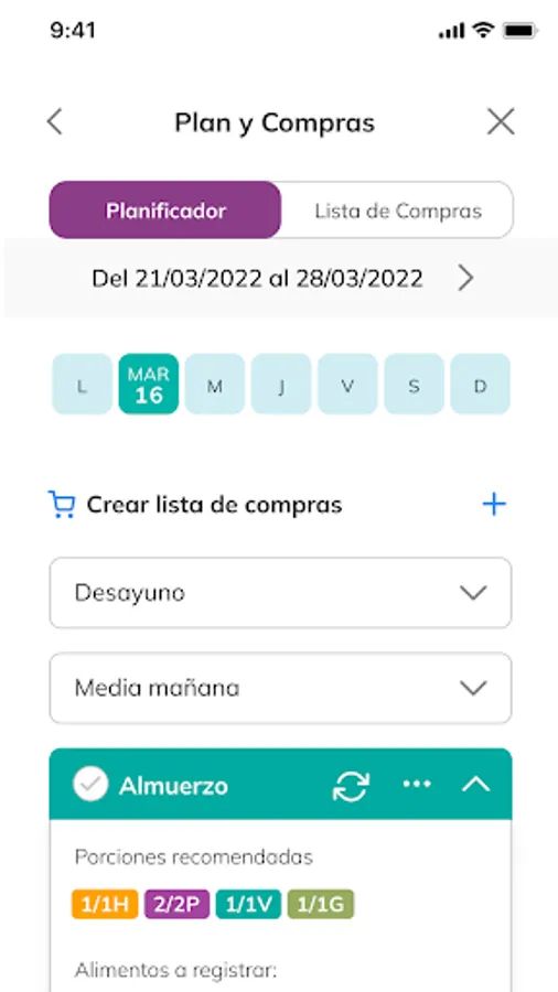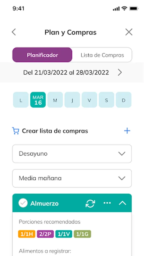 We detail the number of servings recommended for each meal time and an example of the foods that you can include to comply with your plan. You'll be able to keep track of your eating plan by recording the food you eat during the day and setting alerts so you don't forget to record any of your meals.