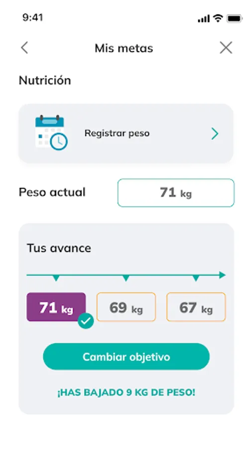 You will see your progress and the record of your progress, according to your goals.