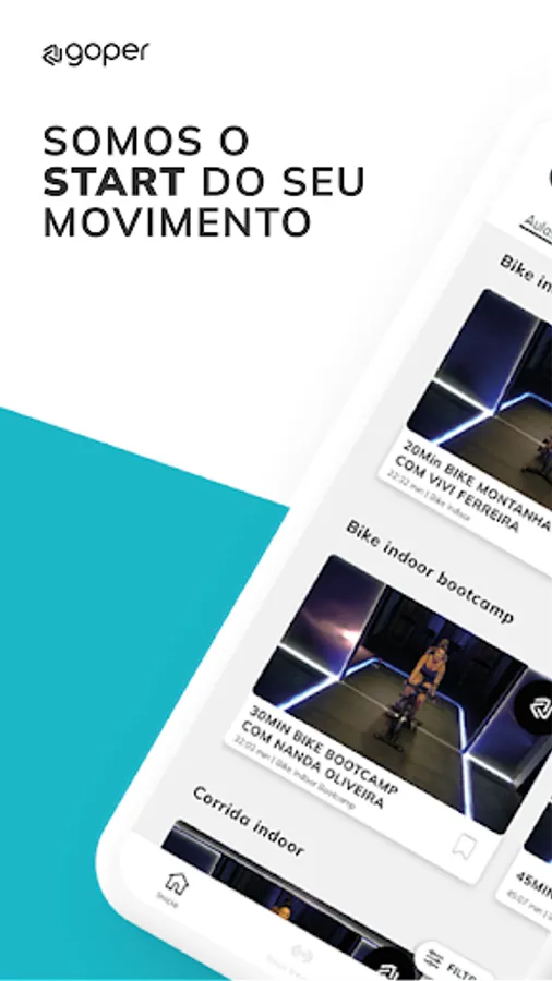 At Goper you will find a personalized gym to train at home or anywhere, with efficient interactive equipment, live and on-demand classes of the main modalities, personalized programs by objective, personal trainer service, connected and engaged community.