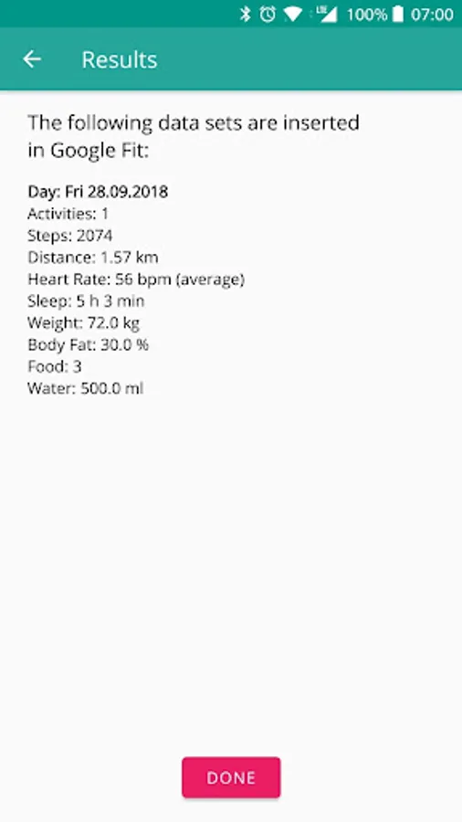 NOTE: It may happen that the data you transfer is not immediately visible in the Google Fit app, because it will take a while for all the images to be updated.