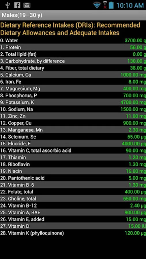 Dietary Reference Intakes (DRIs): Recommended Dietary Allowances and Adequate Intakes, Vitamins, Elements, Total Water and Macronutrients...