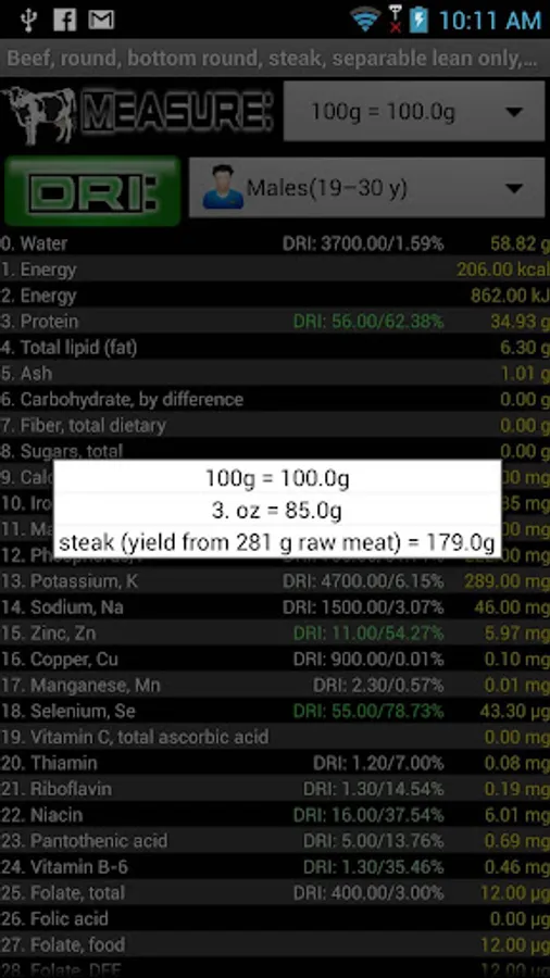 Based on the U.S. Department of Agriculture (USDA), Release 28 (SR28). The USDA National Nutrient Database for Standard Reference (SR) is the major source of food composition data in the United States. Updated 2016.