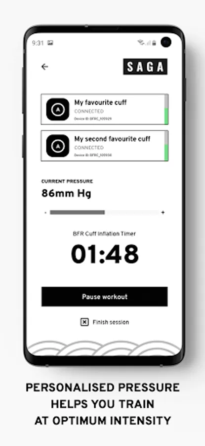 - Intelligently calibrate to an individual’s personalised pressure zone, ensuring safe limb occlusion pressure for the workout