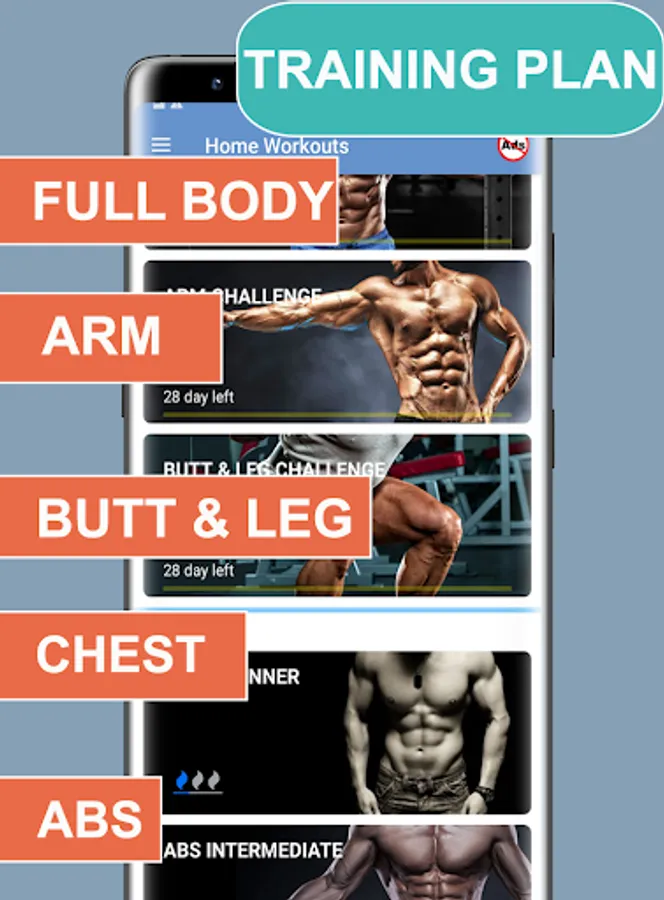 This application includes exercises for the abs, chest, legs, arm as well as body training. All exercises are designed by exeperts. No need equipment, so no need to go to the gym. Although it only takes a few minutes each day, it can effectively tone your muscles and get six pack abs at home.