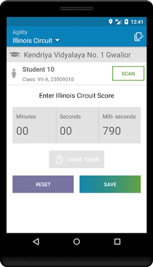 GoForFit Application lets you take any Fitness Test and tag it with an Athlete by scanning the QR Code on the Athlete's ID Card (generated using Active Connect Application).