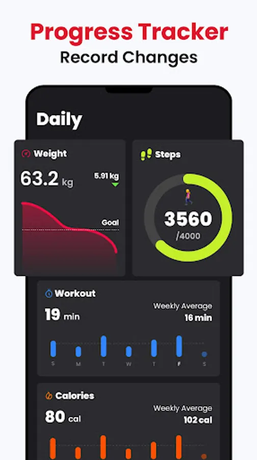 Your latest data and changes of steps, water intake, weight, exercise records, calories burned are showed daily/weekly/monthly to make you stay on track. You can also sync your data to Google Fit.
