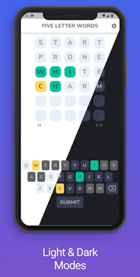 Choose from light or dark modes depending on your device and personal preferences. An updated color scheme makes 5-Letter Words the most enjoyable word game in any setting.
