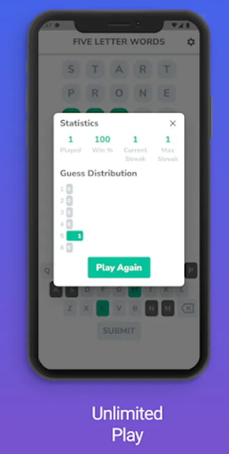 Play unlimited games with no ad interruptions. Nobody likes watching ads, so 5-Letter Words removed all ads between turns, so you’ll never have to wait to start the next word puzzle.