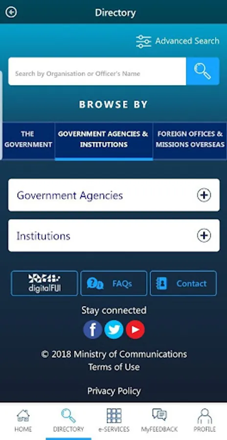 This application is a service provided by the Fijian Government. It offers an integrated mobile application that provides access to the Fijian Government Directory and many other applications to be built on it. It allows a single sign on experience to facilitate interaction with the Fijian government.
