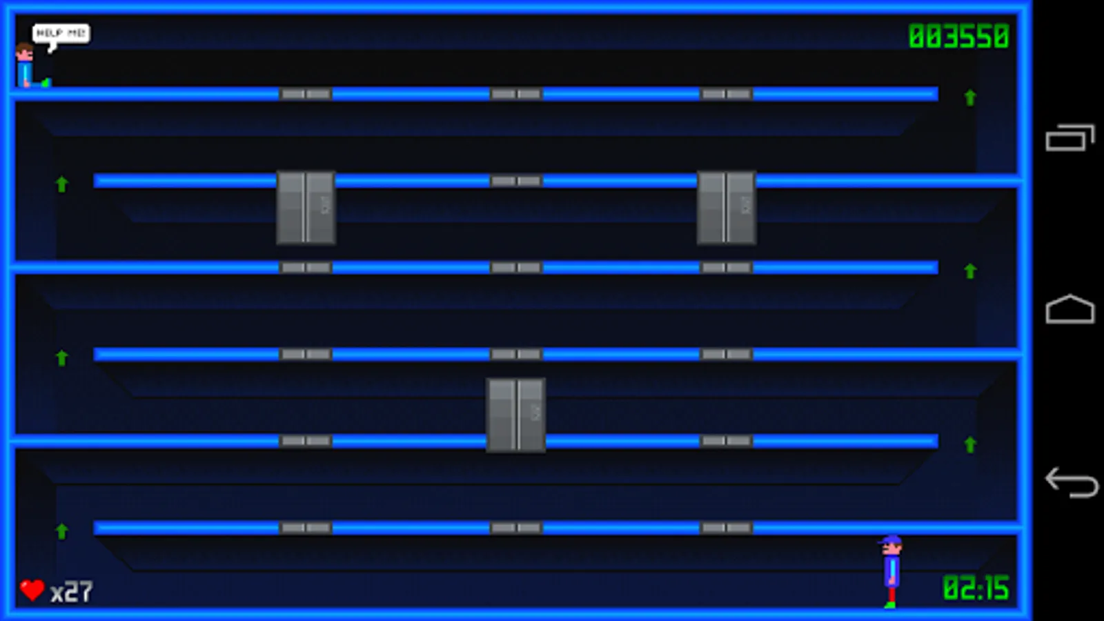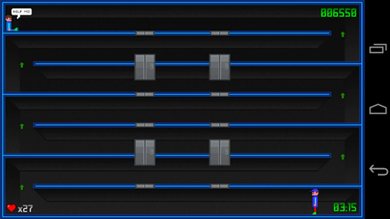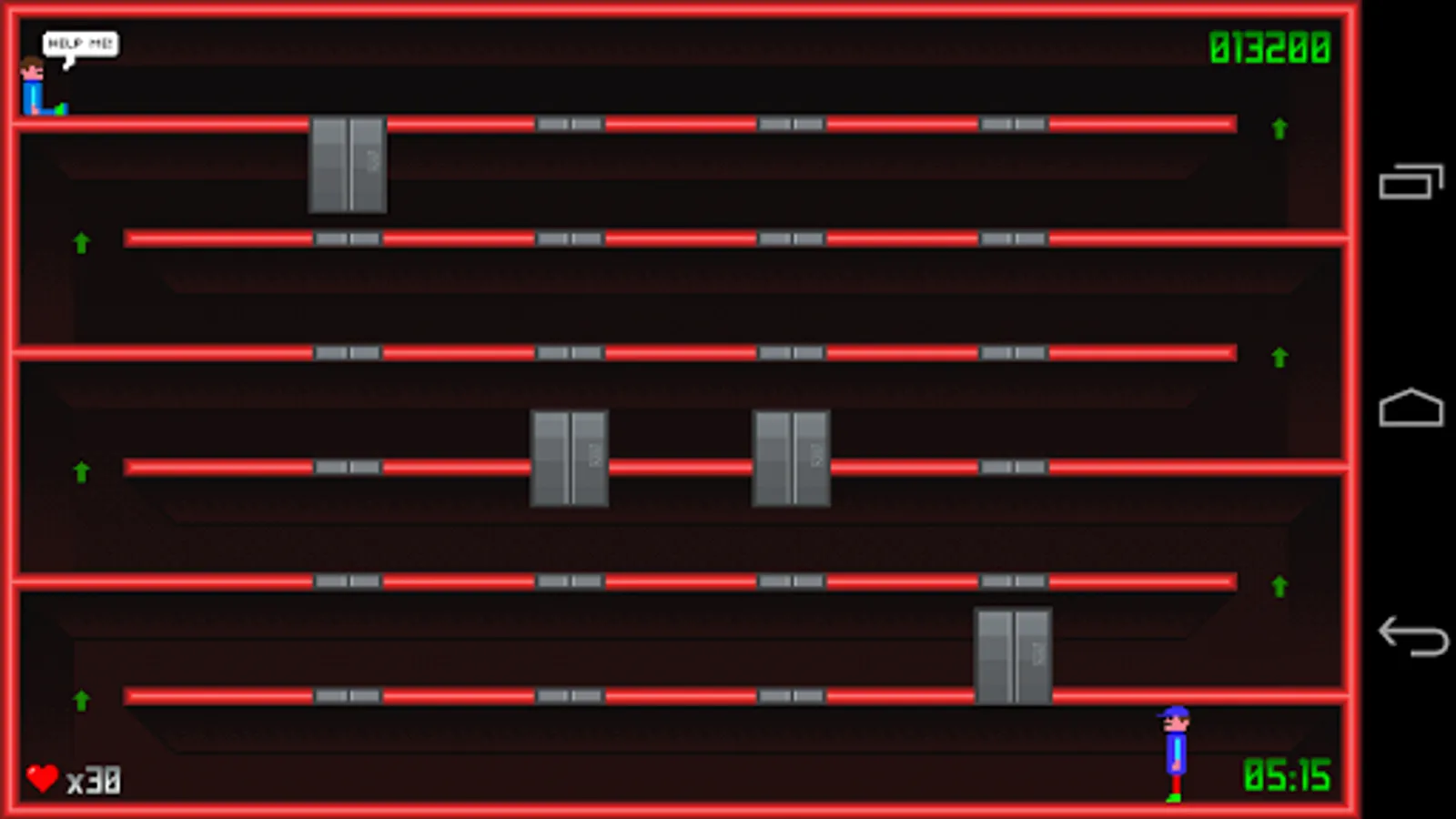 The Elevators have gone berserk trapping an office working on the top floor. You (the elevator technician) must use all your skills to reach the top floor and save him.
