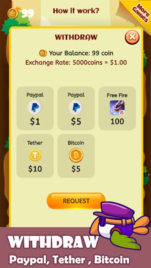 Flap to Earn and Earn is a unique mobile game that lets you have fun while earning real money. Simply fly your bird through obstacles to collect coins and exchange them for cash rewards. With its intuitive one-touch controls and engaging gameplay, Flap to Earn and Earn offers hours of entertainment and the opportunity to earn money on the side. Unlock new characters, compete with friends, and earn real money while having fun. Download Flap to Earn and Earn now and start earning today!