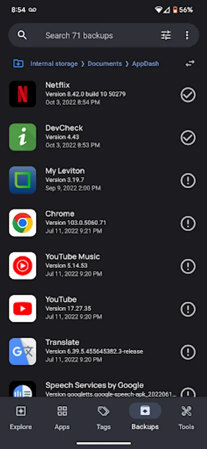 Backup your apps to multiple backup locations, including internal storage, Google Drive and SMB shares.