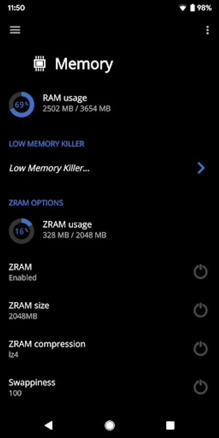 Memory Settings: adjust zRAM, KSM, lowmemorykiller, and virtual memory settings