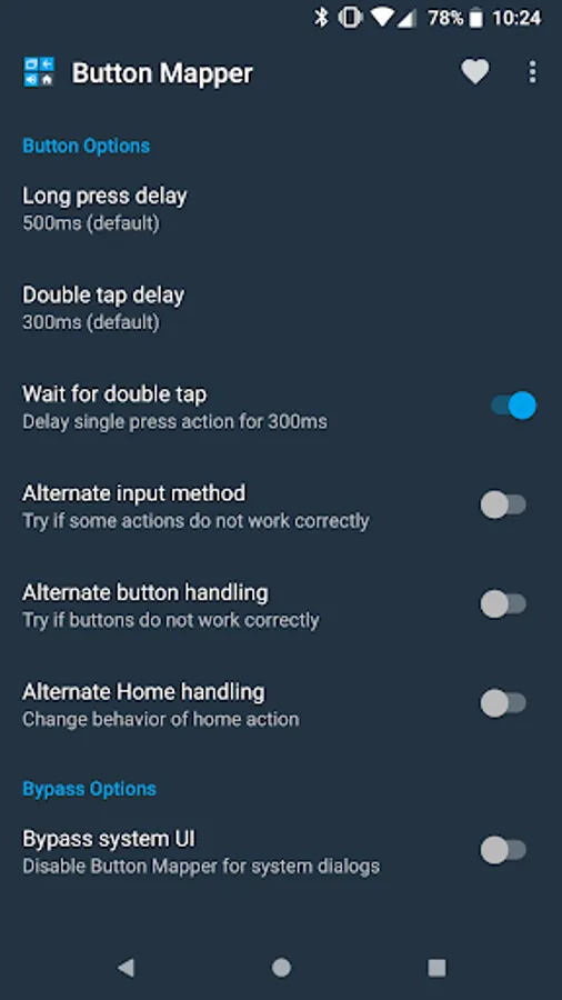 Button Mapper can remap most physical or capacitive keys and buttons, such as volume buttons, some assist buttons, and capacitive home, back and recent apps keys. Button Mapper can also remap buttons on many gamepads, remotes and other peripheral devices.