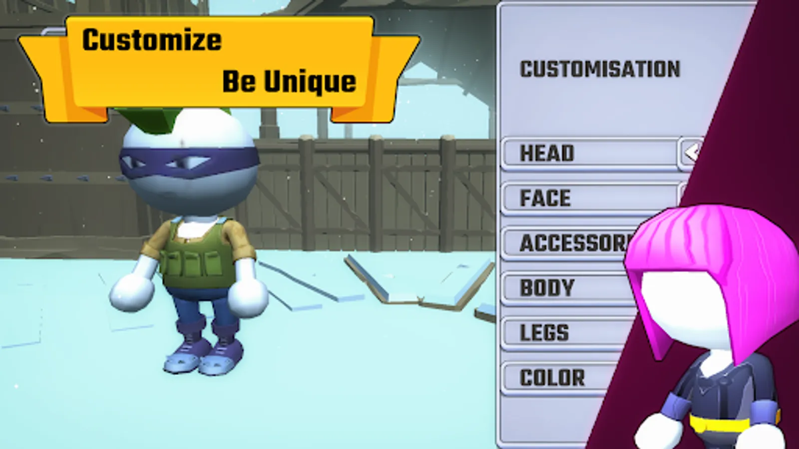 Customize your human from simple wardrobe to epic sets including samurais, soldiers, mafia, cyberpunk, wizards. Paint your human as you like. Use funny faces to show emotion of your hero.