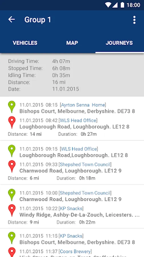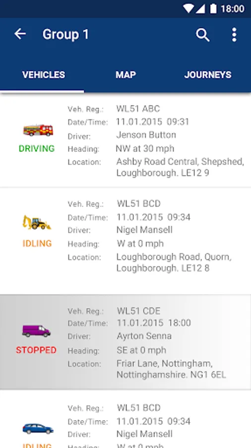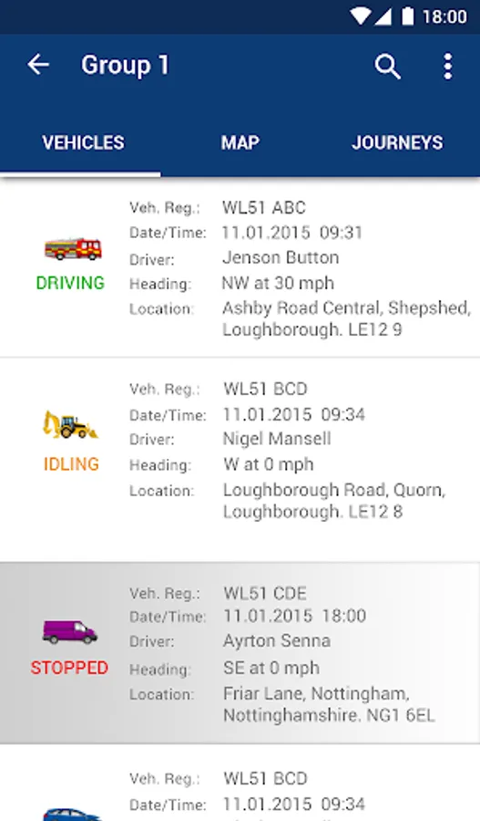 Group Selection: Choose to view all or one vehicle from a specific group.