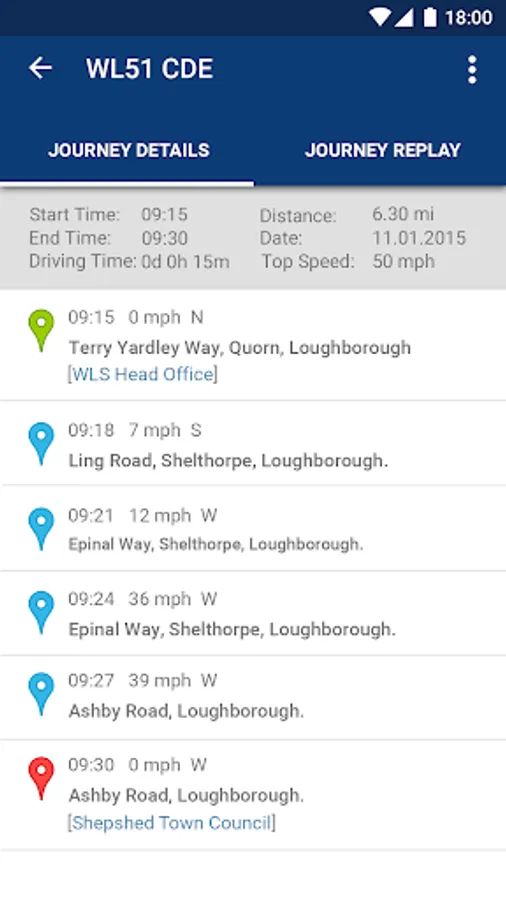 Journey Replay: Replay the journey plotted on the map (Snail Trail).