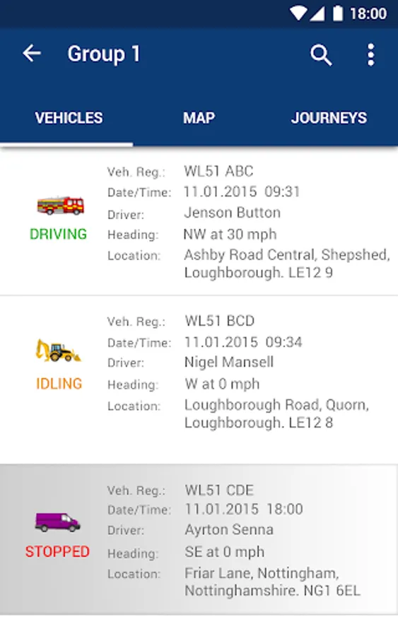 Live Location: Find a vehicle instantly, location displayed, ignition status, speed and direction.