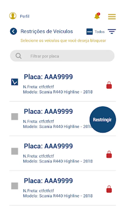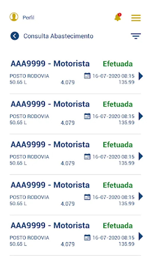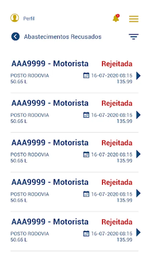 Visibility of the percentage of credits used, warning of blocked fleet, percentage of supply with or without agreement and location of stations with the best price by geolocation