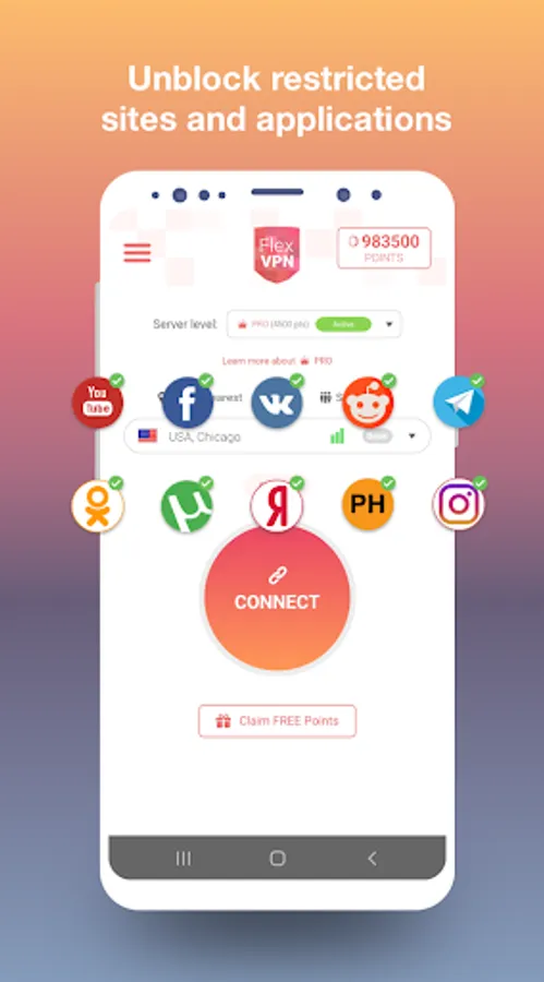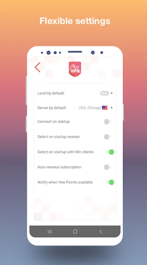 Use Flex VPN to get the most out of PRO VPN totally free. Being a fast and free VPN, it offers changing IP-address or accessing unavailable websites /apps with a single-click ease. Thanks to OpenVPN connection technology supporting 1024-bit OpenSSL keys, you can count on a secure and anonymous connection to open Wi-Fi networks.