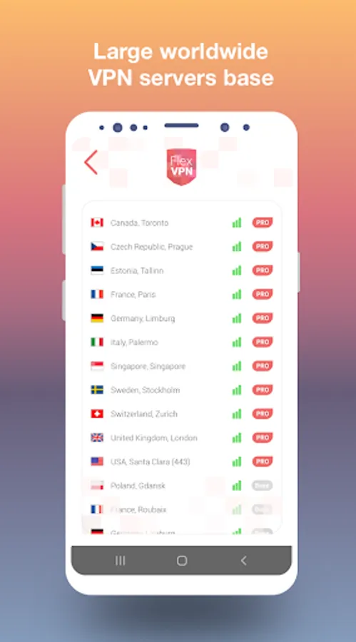 Flex VPN has a two-tier server fleet consisting of Base servers and PRO servers. Currently, its server network spans over 25 countries, and this network is being constantly expanded.