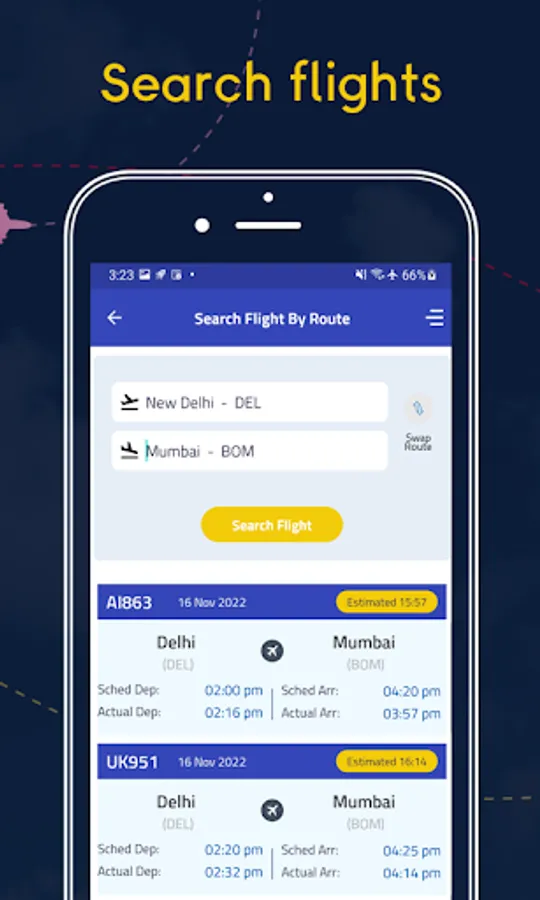 1. Search Flights Information by Route :- Flight Tracker or Flight Status app allows you to search for all the flights for the week for the given route. If you are looking to travel, all you need to do is type in the route and the Flight Tracker or Flight Status app will give you all the flights for that journey.