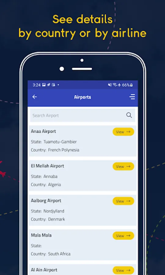 4. Search For Airports Worldwide :- The Flight Tracker app allows you to search for Airports Worldwide.