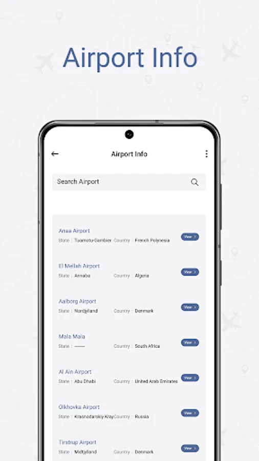 • Search For Airports Worldwide : The Flight Tracker app allows you to search for Airports Worldwide with below details.