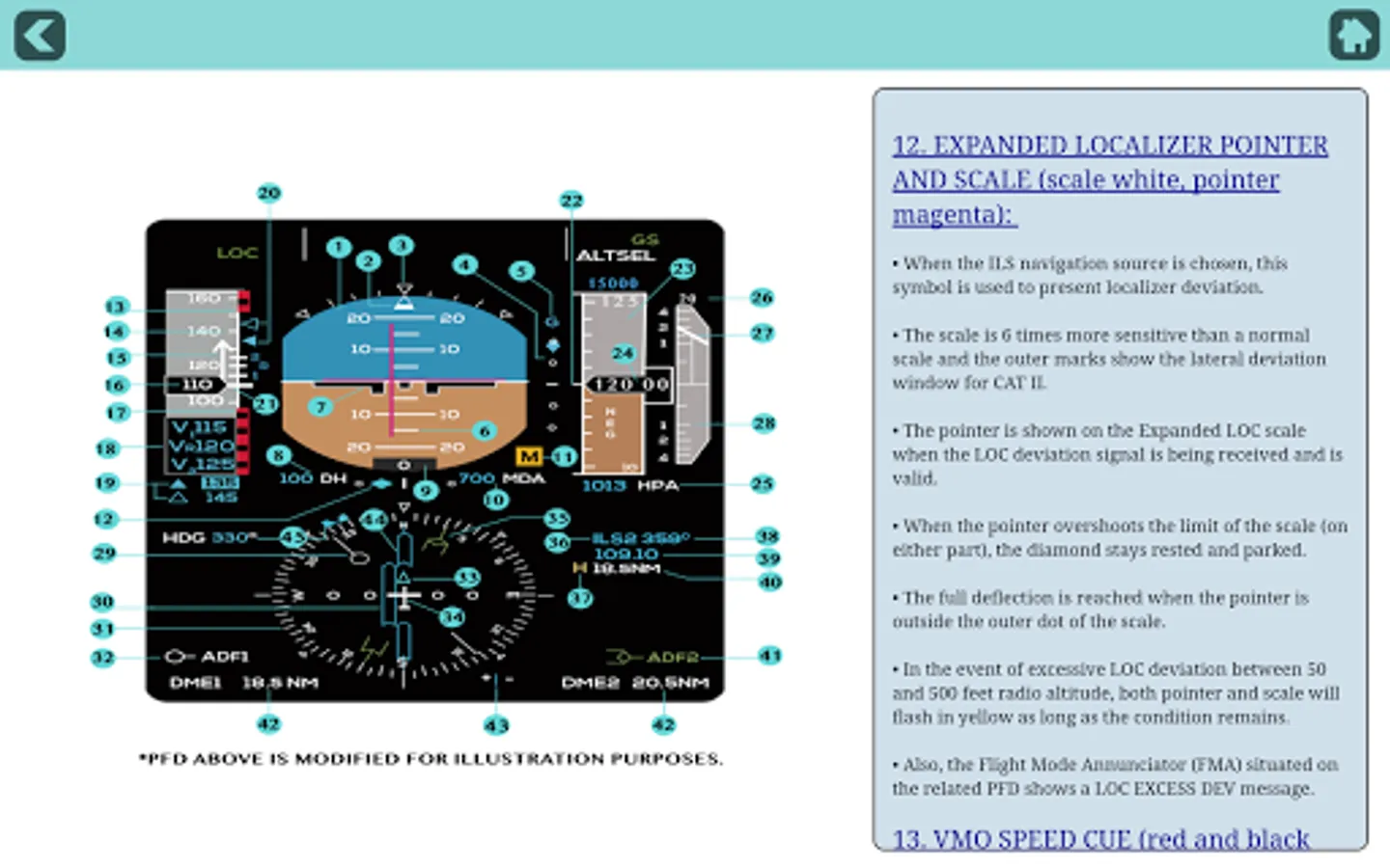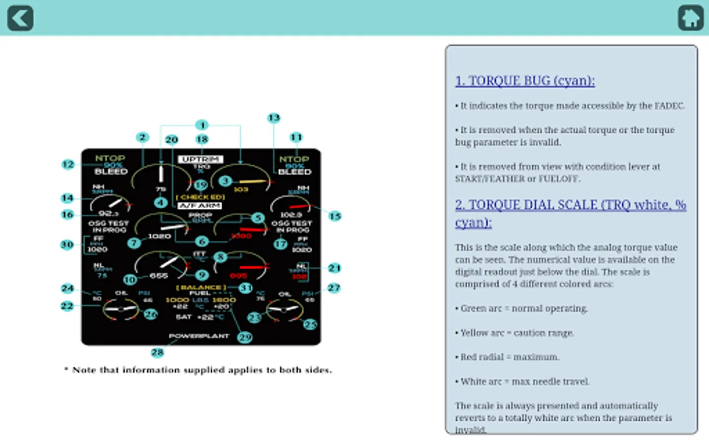 The Application is easy to use and very user friendly with excellent quality vector panel images of all the displays and switches. It is also a great reference for pilots currently flying on type and acts as a great companion study tool for cadet pilots training on this state of the art machine.