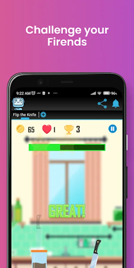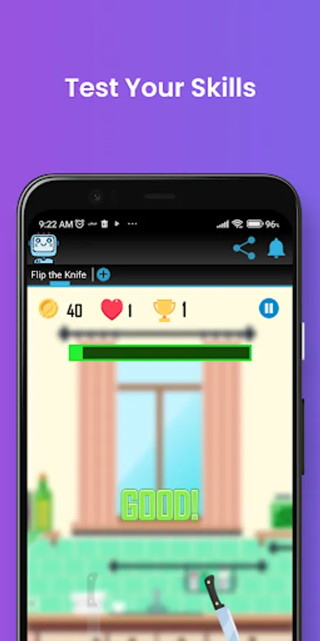 🗡️ How To Play : You Need To be Very Fast and Focused when you Flip the Knife , each level Gives you a direction to flip the knife to a specific location, try your best to flip the knife at the object to get a good score and move to the next level .