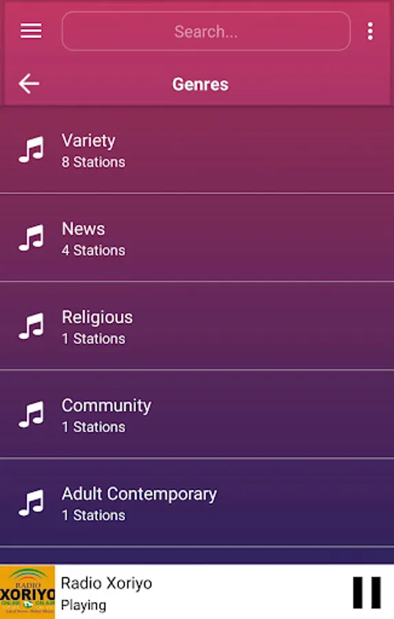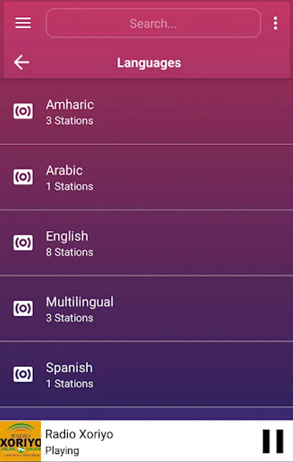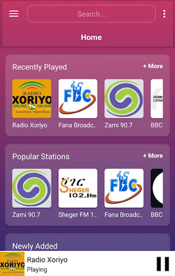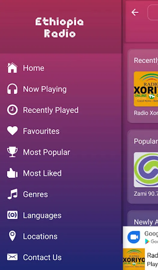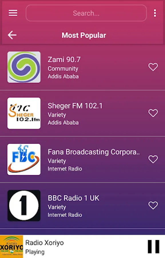 The best collection of online radios and FM radios from Ethiopia. More than 5 radio stations from Ethiopia. This app is loaded with favourites list, 6 color themes, alarm, sleep timer to auto shutdown FM after a time, sharing with friends, in-built volume control, background playing, retaining last played station on start.
