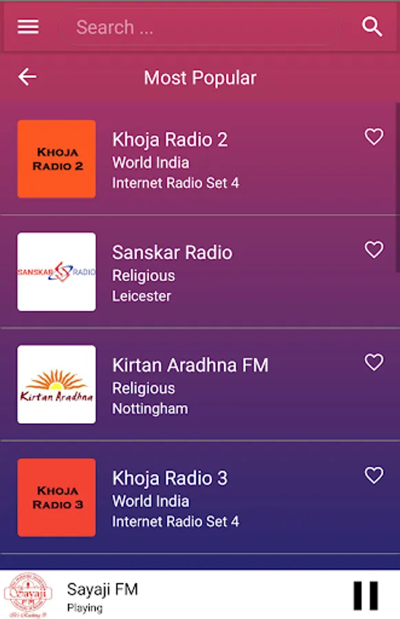 The best collection of online radios and FM radios for Gujarati Language. More than 15 Gujarati radio stations. This app is loaded with favourites list, sleep timer to auto shutdown FM after a time, sharing with friends, in-built volume control, background playing, retaining last played station on start.