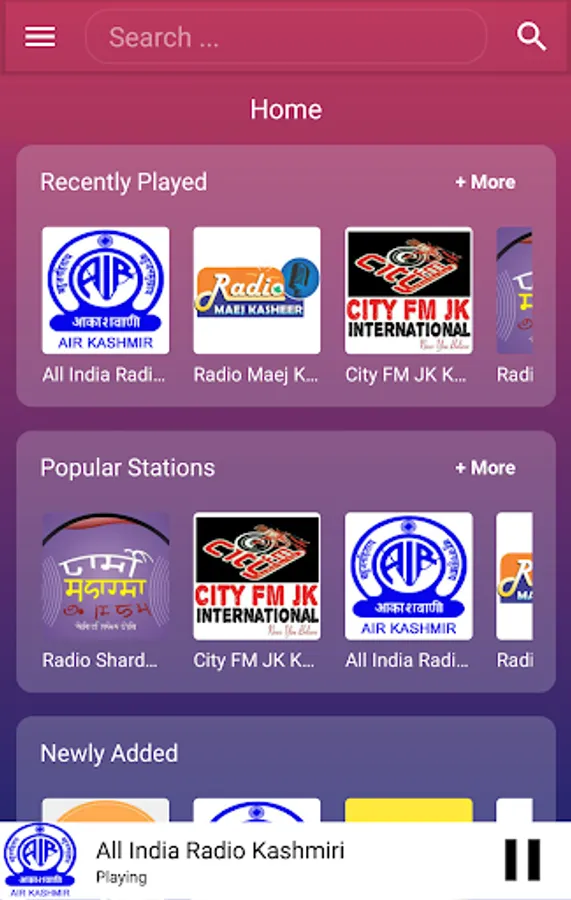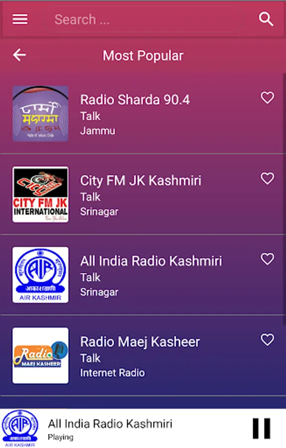 The best collection of online radios and FM radios for Kashmiri Language. All Kashmiri radio stations. This app is loaded with favourites list, sleep timer to auto shutdown FM after a time, sharing with friends, in-built volume control, background playing, retaining last played station on start.