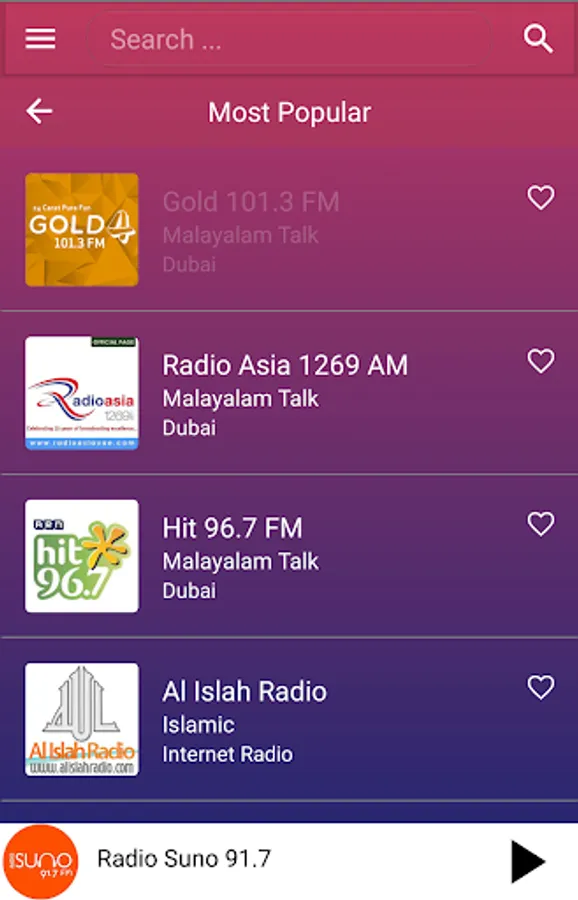The best collection of online radios and FM radios for Malayalam Language. More than 100 Malayalam radio stations. This app is loaded with favourites list, sleep timer to auto shutdown FM after a time, sharing with friends, in-built volume control, background playing, retaining last played station on start.