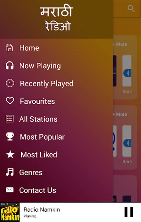 The best collection of online radios and FM radios for Marathi Language. More than 10 Marathi radio stations. This app is loaded with favourites list, sleep timer to auto shutdown FM after a time, sharing with friends, in-built volume control, background playing, retaining last played station on start.