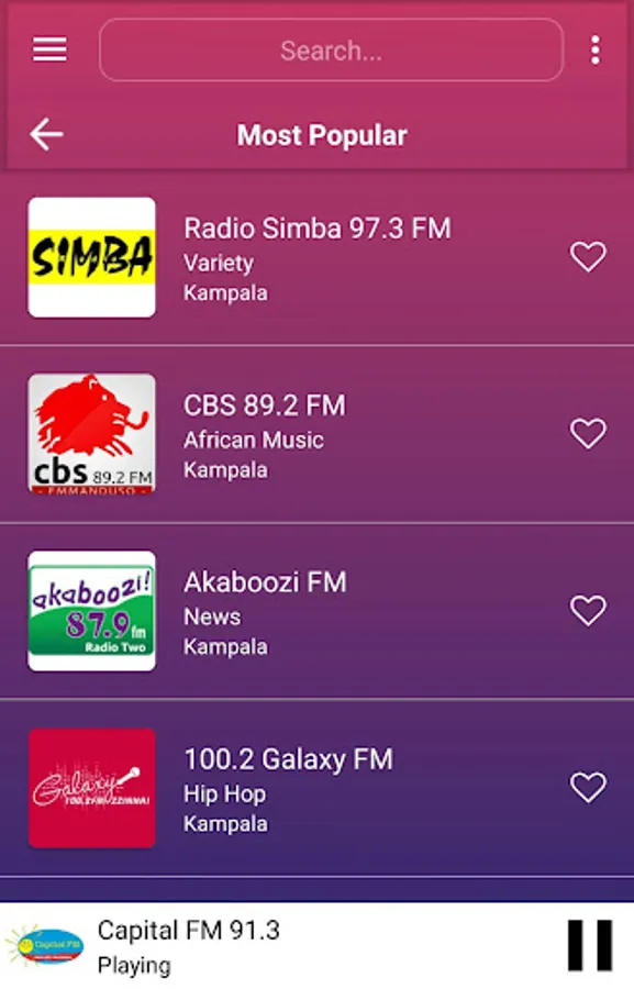 The best collection of online radios and FM radios from Uganda. More than 15 radio stations from Uganda. This app is loaded with favourites list, 6 color themes, alarm, sleep timer to auto shutdown FM after a time, sharing with friends, in-built volume control, background playing, retaining last played station on start.