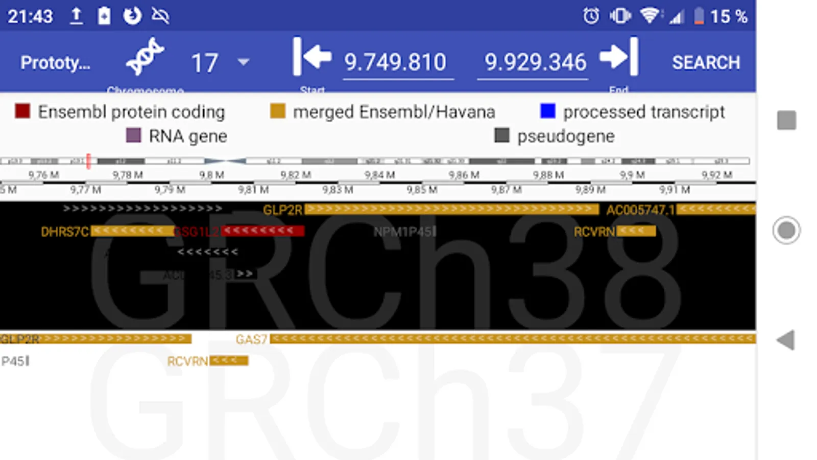 Prototype to browse Ensembl genome data using touch gestures