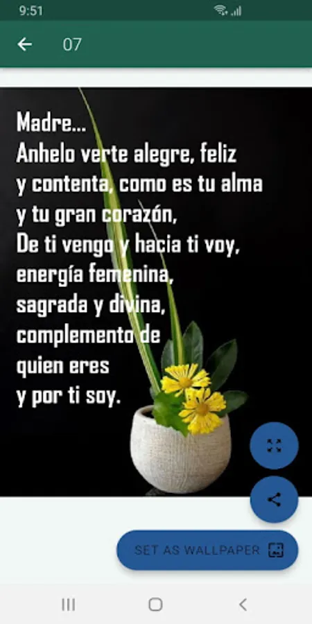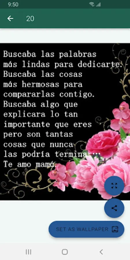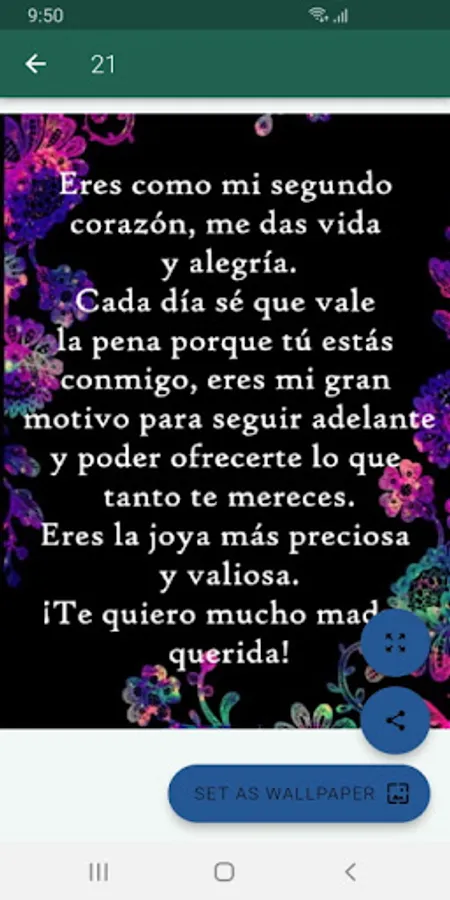 Sending congratulations to mothers on their day is an ancient tradition, it is a special day and that nobody wants to ignore, that is why we have created this application with beautiful bouquets of flowers and a beautiful dedication, which will help you make yourself present the Mother's day. With just one click you can send as many postcards as you want and celebrate all the mothers in the world.