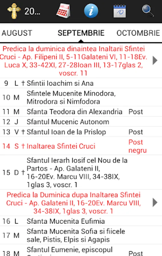 Orthodox (romanian) calendar with all the fastings of the year, all sunday gospel references and major holidays.