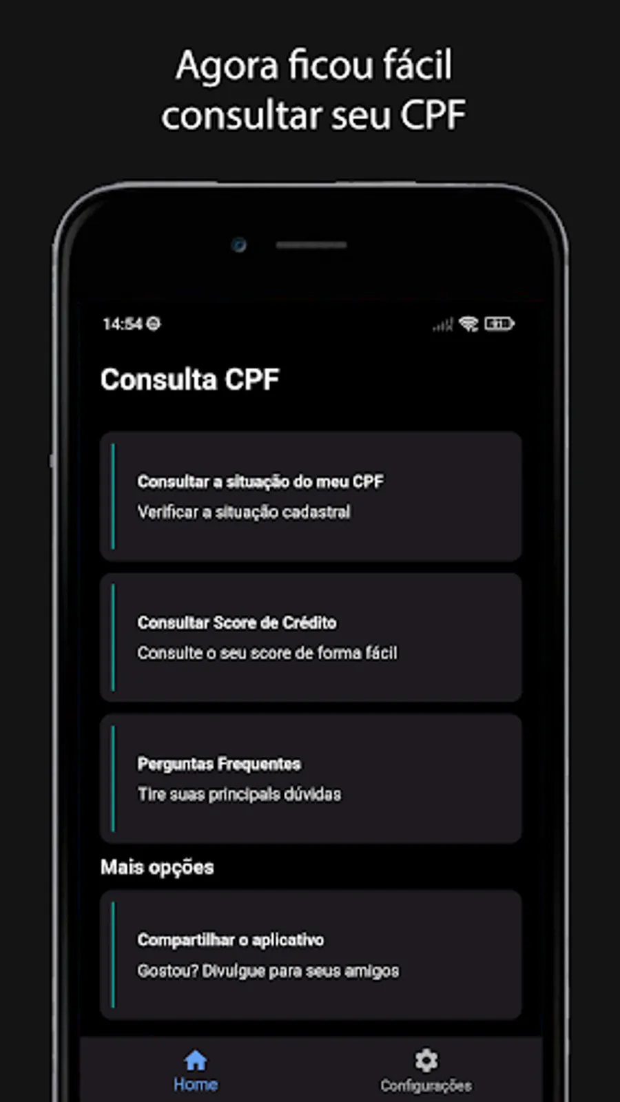 Track the status of your CPF and Score for free. The application is independent from the government and is available to everyone at no cost.