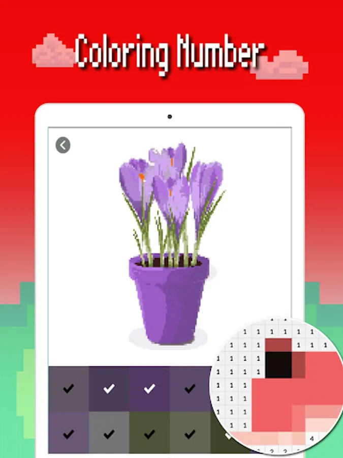 You can choose your beautiful flora from variety of pixel art flower images and follow the numbers to bring them to color. Enjoy but make sure your can full to coloring, pixel art flower color by number game is the best pixel art game ever.