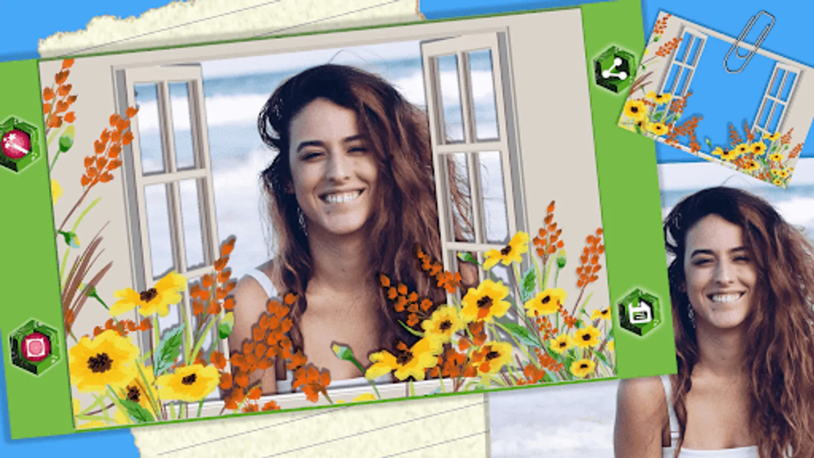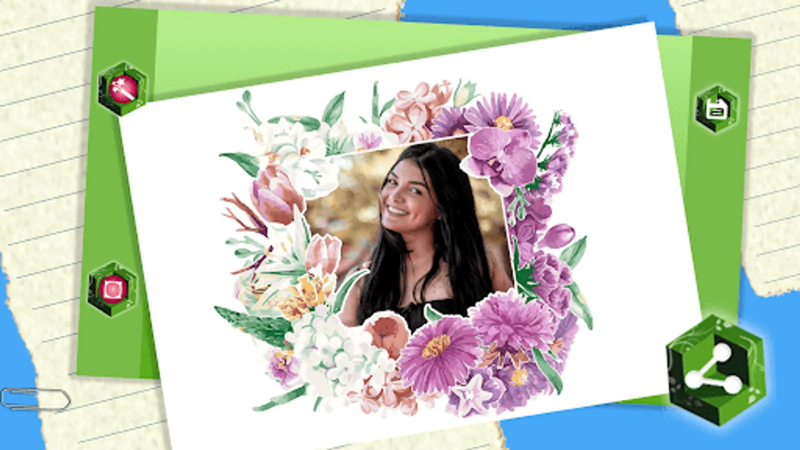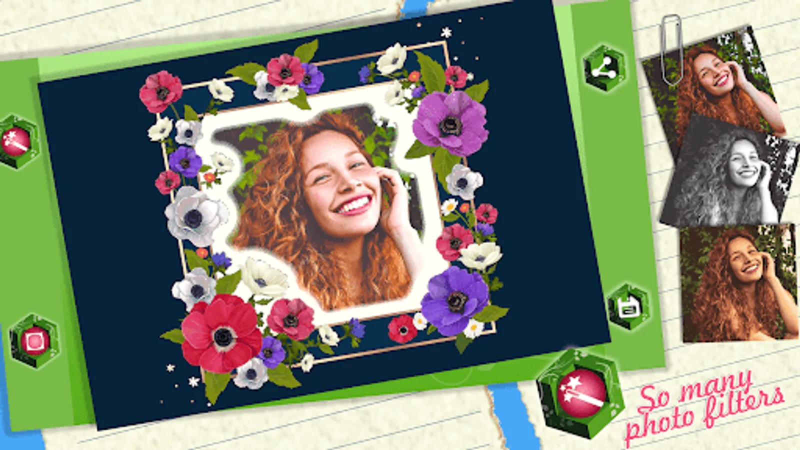🌷 Add beautiful floral frames to your precious photo art and save your decorated pictures,