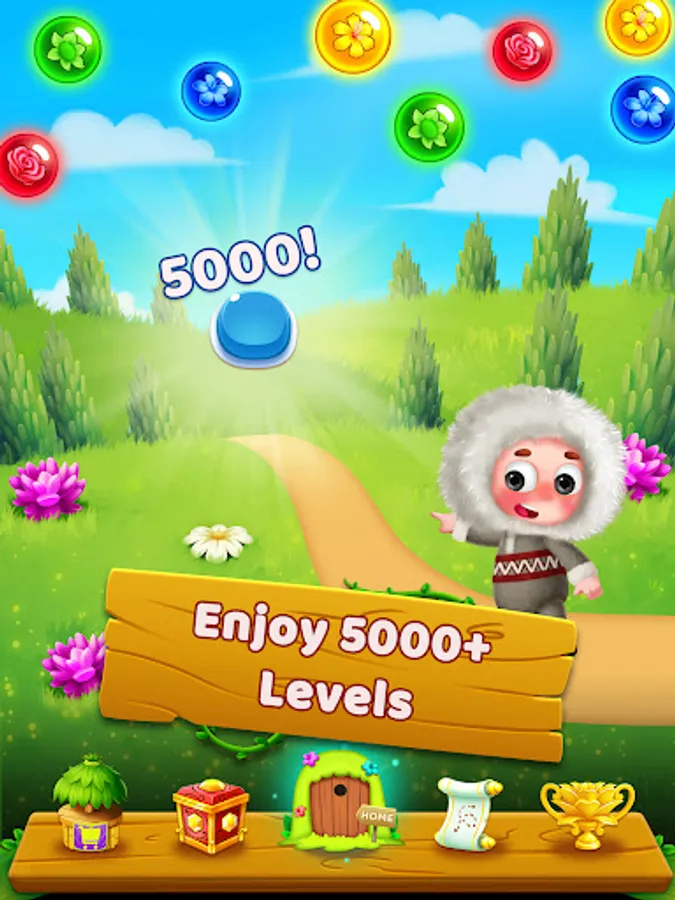 The flower gods have called upon a chosen few warriors to retrieve flowers with super magical powers. The warriors of each world must defeat the evil that lies in their respective worlds and gain possession of the mythical flowers that lie in their captivity. Can you help the warriors in doing so? Travel exquisite locations in worlds - each different from the previous one and enjoy a magical adventure in the bubble shooter experience.