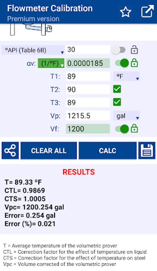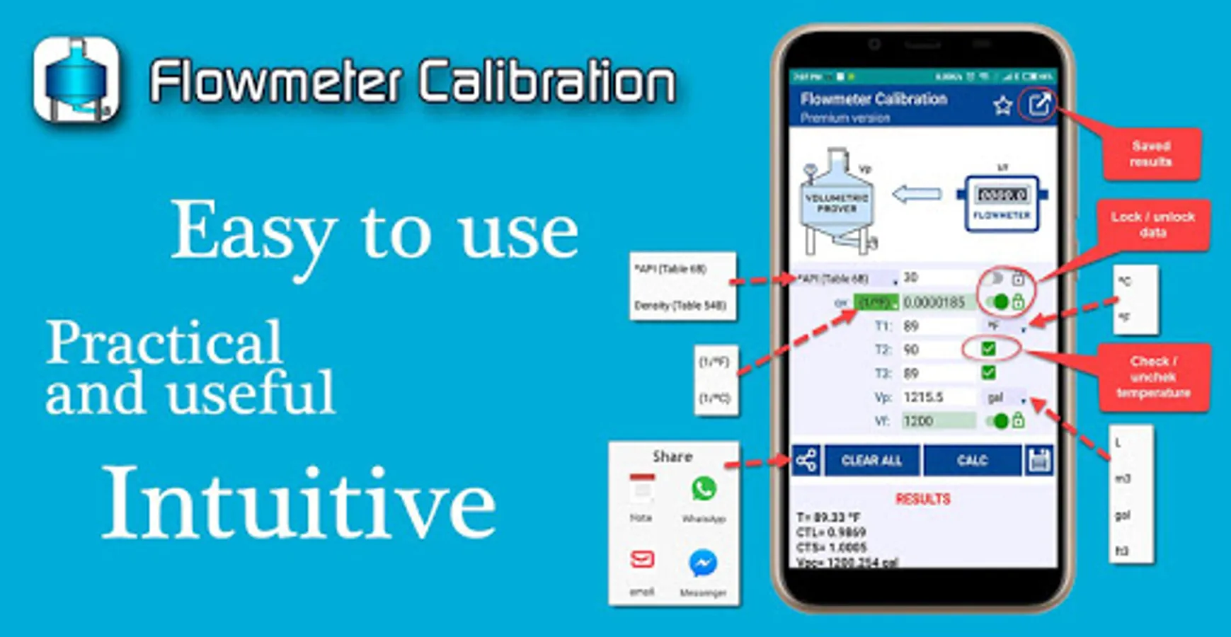 "Flowmeter calibration" is an App that allows to calculate in a simple and practical way the test parameters resulting from the calibration of liquid flowmeters not subjected to pressure using a reference volumetric prover.