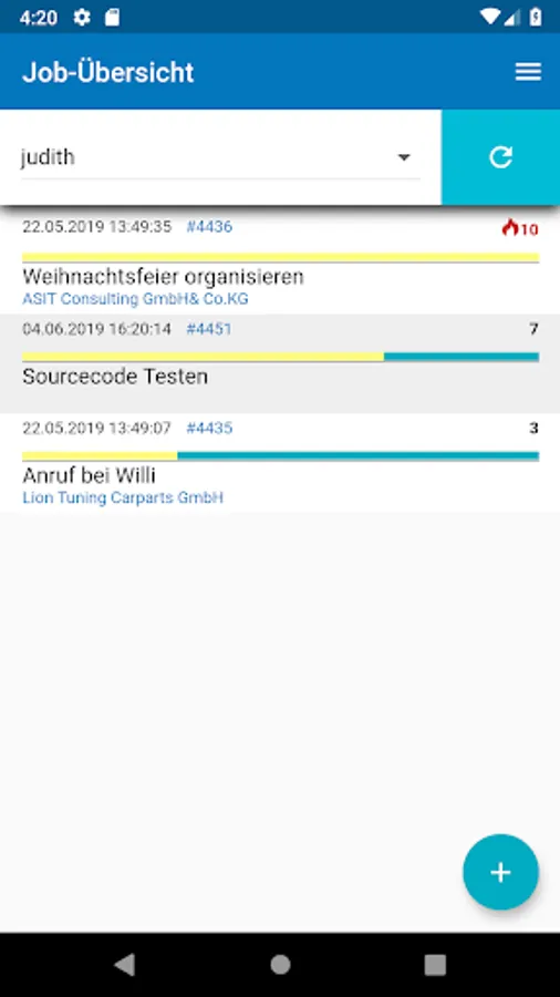 With this app you keep your tasks always in view. Use the job history to keep track. If you want, you can share your job list with your team and sync it via the cloud with the web browser variant of the dashboard.