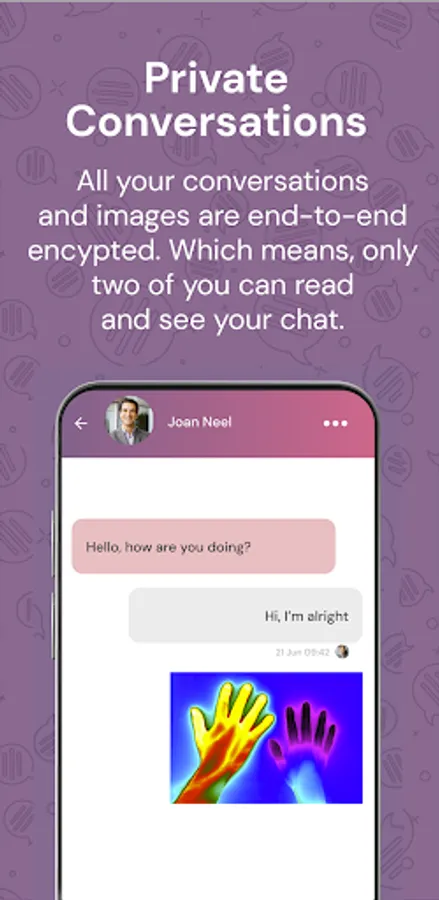 All your conversations and images are end-to-end encrypted. That means that messages can only be read by you and the person you send them to, and no one else – not even us – can see it.