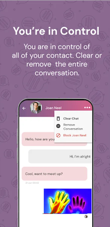 You are in control of all of your contacts. Clear or remove entire conversations. If someone’s bothering you, you can block them. When you’ve blocked someone, they won’t be able to create new conversations with you.