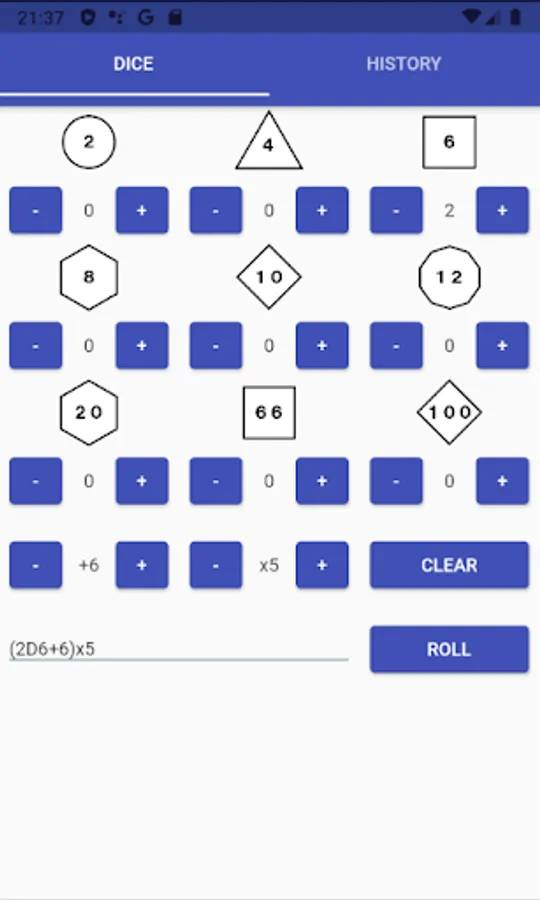 It is a standard dice application that you can roll the dice just by selecting the dice you want to roll and tapping the button.